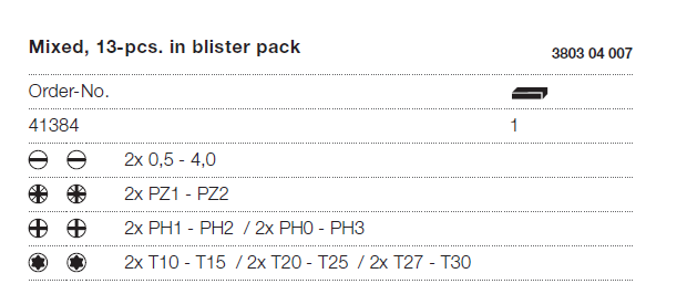 Wiha Mixed Double Sided Bits In Blister Pack 13pcs