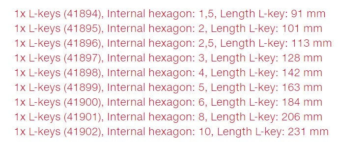 Description It's a common experience. It's not easy to remove individual keys from many L-key holders or place them back in the holder again. With Wiha ErgoStar, you can now say goodbye to such problems as it eliminates them in an ingenious way. Turning one L-key in the holder makes all other keys turn to the side at the same angle, enabling you to remove the key you need quickly and comfortably. A clamping mechanism in the holder makes sure that the keys cannot fall out, regardless of whether the holder is open or closed. The coloured L-keys are also quick and easy to find, even in the dark with a UV light thanks to luminescent paint. This means you take less time to find lost L-keys and minimise the risk of leaving tools inside machines when working on equipment. Thanks to the MagicRing® holding feature with its spring steel ring, the L-keys hold all standard hex screws firmly in any position perfectly without any magnets. The hexagonal ball end enables users to fasten and unfasten effortlessly at an angle of up to 25°. The L-key set contains nine coloured hexagon L-keys in standard sizes.