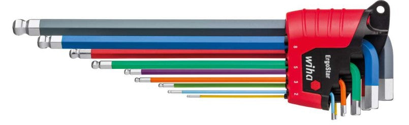 Wiha L Key Set In Ergostar Holder Hexagonal Ball End 9pcs In Fluorescent Colour 1.5-10mm 9pcs