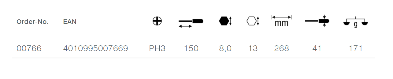 Wiha SoftFinish® Phillips Screwdriver Hex Blade With Hex Bolster + PH3 x 150mm