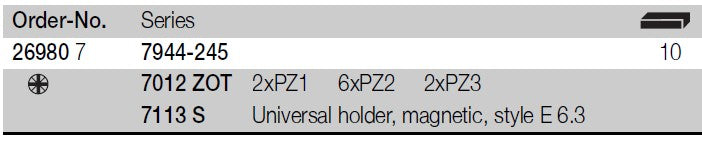 Bits: 25 mm ZOT Torsion bits.
