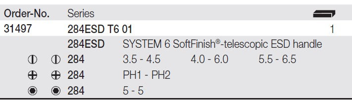 Handle: SYSTEM 6 SoftFinish®-telescopic ESD handle.