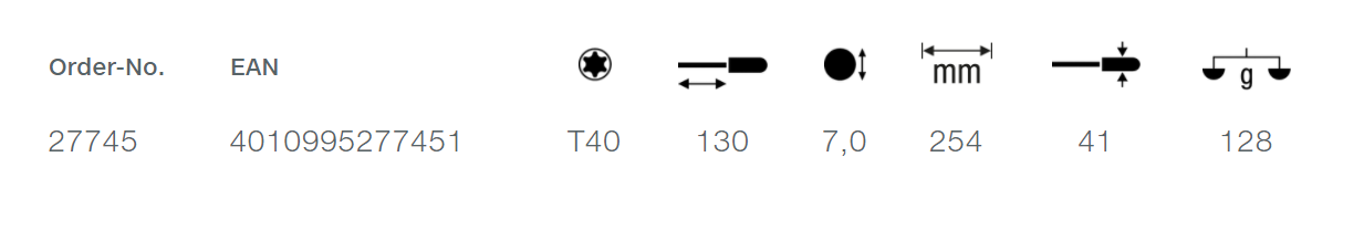 Wiha SoftFinish® TORX® MagicSpring® Screwdriver T40 x 130mm