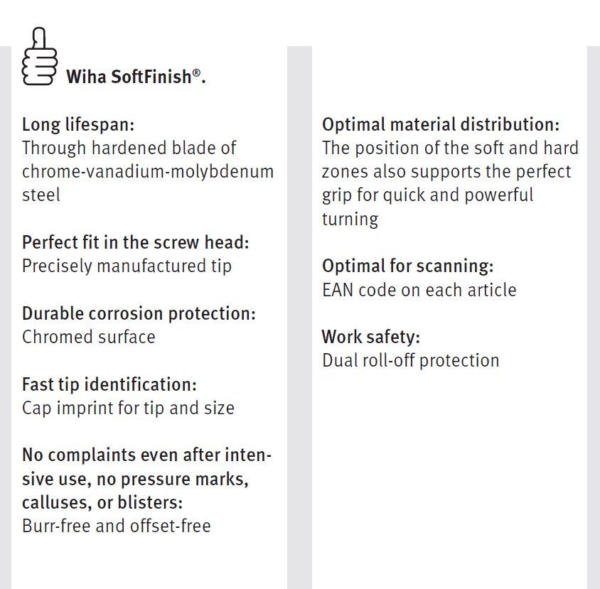 Handle: Ergonomic Wiha SoftFinish® multi-component
