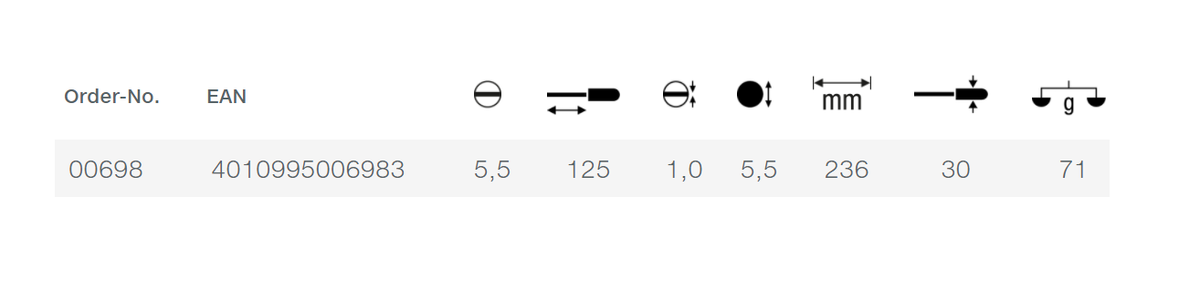 Wiha SoftFinish® Slotted Cabinet Screwdriver Round Blade - 5.5mm x 125mm