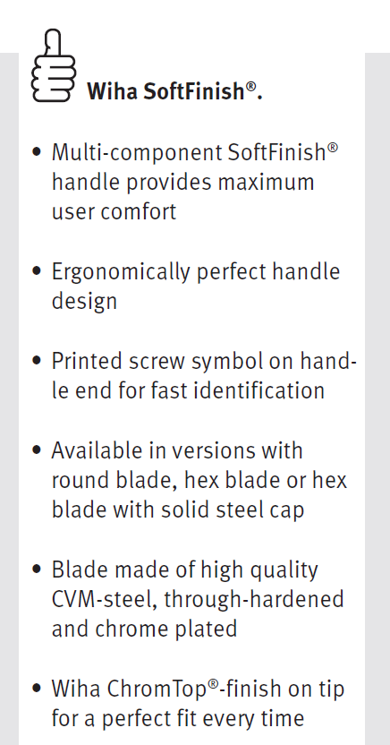 Unique Wiha handle-length concept for optimum balance of torque and control.