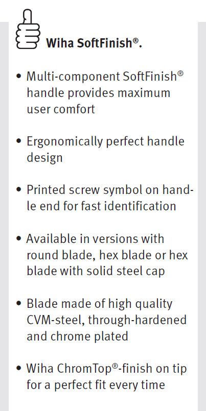 Handle: Ergonomic Wiha SoftFinish® multi-component handle with roll-off protection.