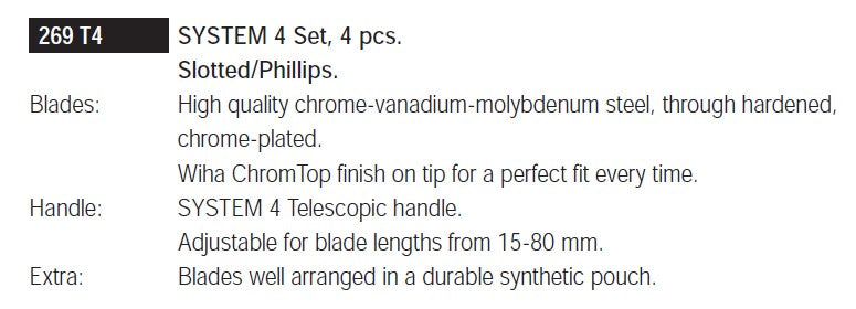 Wiha SYSTEM 4 reversible blades set, 4 pcs. Slotted/ Phillips.