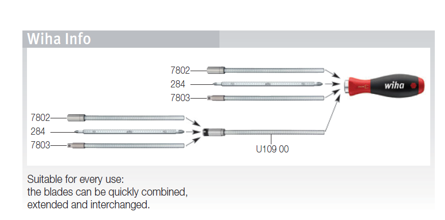 Wiha SYSTEM 6 reversible blades set, 11 pcs. Slotted/ Phillips/ Pozidriv/ TORX®/ hex/ ball end hex.