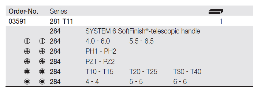 Compact fastening tool System 6 with comprehensive, interchangeable blade selection.