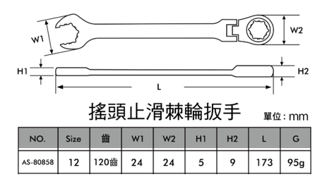 Arsenal 12mm Swivel Ratchet Combination Gear Wrench